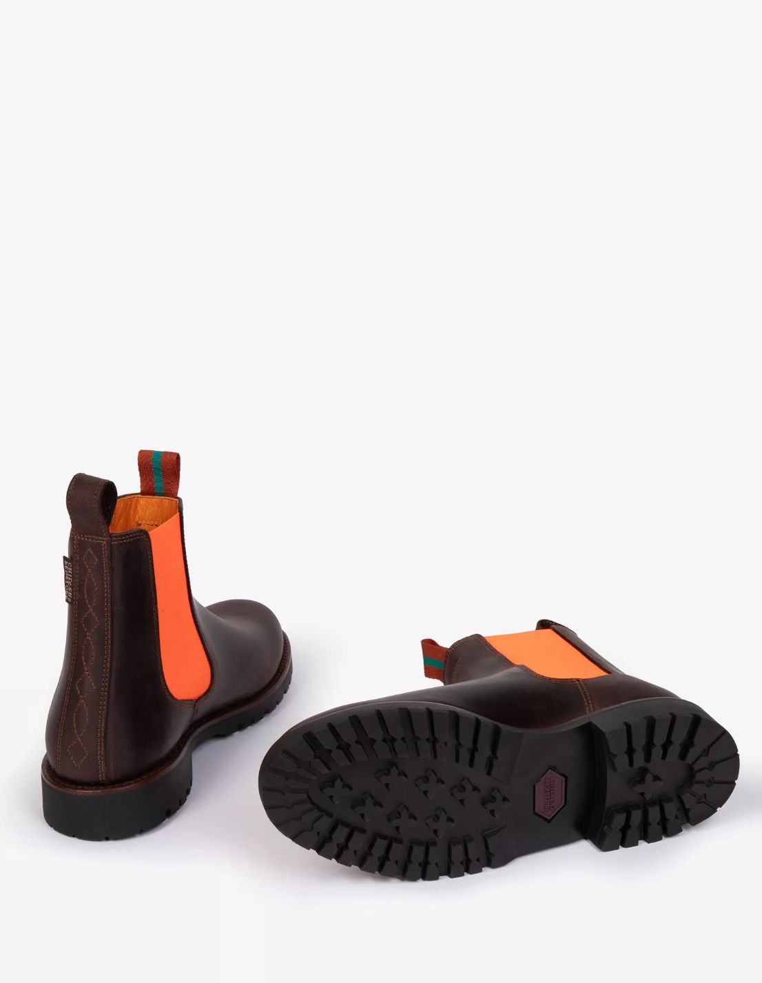 The Penelope Chilvers Nelson Leather Boot is the perfect staple. Contrast elastics in bright neons give these styles an added dimension of playfulness. While their oiled leather finish gives a worn look from the start, they will only improve with time. Designed with a Goodyear welted rubber sole for comfort and flexibility.